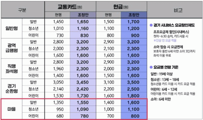 [NWS¹æ¼Û=Çѽ¸ñ ±âÀÚ]¿À´Â 25ÀÏ Ã¹Â÷ºÎÅÍ ¼º³² Áö¿ª ½Ã³»¡¤¸¶À»¡¤±¤¿ª¹ö½º µîÀÇ ¿ä±ÝÀÌ ÀλóµÈ´Ù. À̹ø ¿ä±Ý Á¶Á¤Àº ¹°°¡ »ó½Â, ¿î¼Û¿ø°¡ Áõ°¡, À̿밴 °¨¼Ò µîÀ¸·Î ÀÎÇÑ ¿î¼ö¾÷üÀÇ °æ¿µ³­À» ¿ÏÈ­ÇÏ°í ¾ÈÁ¤ÀûÀÎ ±³Åë ¼­ºñ½º¸¦ À¯ÁöÇϱ⡦