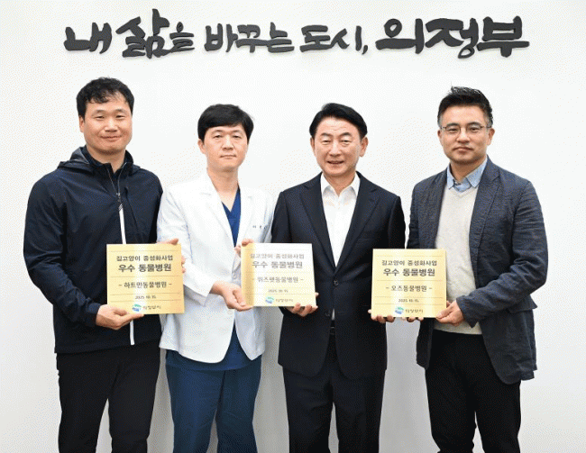 [»çȸ] ÀÇÁ¤ºÎ½Ã, '±æ°í¾çÀÌ Áß¼ºÈ­»ç¾÷ ¿ì¼ö µ¿¹°º´¿ø' ÀÎÁõÆÐ Àü´Þ |2025. 10.16