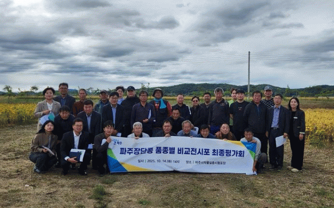 [NWS¹æ¼Û=Çѽ¸ñ ±âÀÚ]ÆÄÁֽô Áö³­ 14ÀÏ Àå´Ü¸é °Å°î¸®¿¡ À§Ä¡ÇÑ ÆÄÁֽà ÀÛ¹°½ÇÁõ½ÃÇèÆ÷Àå¿¡¼­ ÆÄÁÖÀå´ÜÄá ǰÁ¾º° ºñ±³ Àü½ÃÆ÷ ÃÖÁ¾ Æò°¡È¸ ¹× °£´ãȸ¸¦ °³ÃÖÇß´Ù°í ¹àÇû´Ù. À̳¯ Çà»ç¿¡¼­´Â ³óÃÌÁøÈïû¡¤°æ±âµµ³ó¾÷±â¼ú¿ø¡¤ÆÄÁֽóó¾÷¡¦