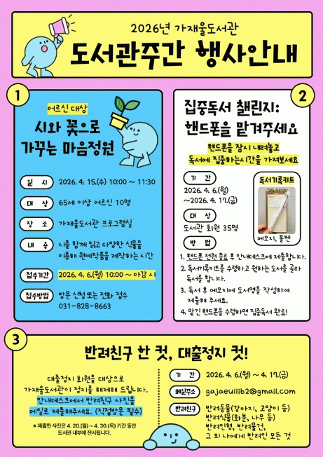 [»çȸ] ÀÇÁ¤ºÎ°¡Àç¿ïµµ¼­°ü, 4¿ù µµ¼­°üÁÖ°£ Çà»ç ¿î¿µ |2026. 03.24
