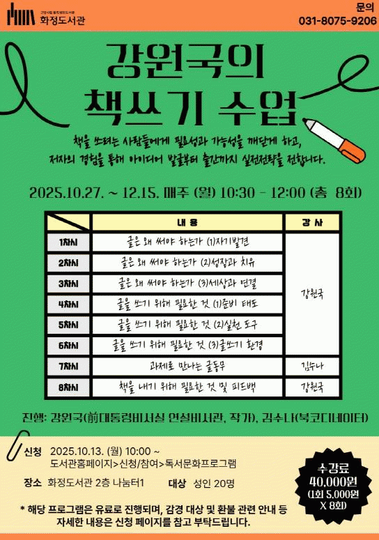 [»çȸ] °í¾ç½Ã È­Á¤µµ¼­°ü, '°­¿ø±¹ÀÇ Ã¥¾²±â ¼ö¾÷' ¿î¿µ |2025. 10.10