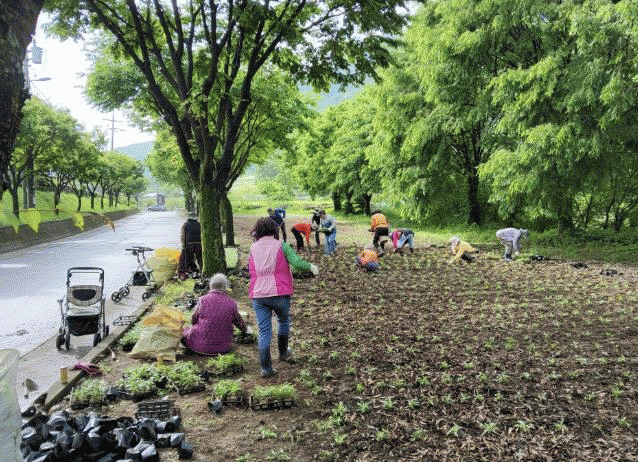 [NWS¹æ¼Û=Çѽ¸ñ ±âÀÚ]´Ü¾ç±º °¢Áö¿¡¼­ ¸¶À» ÁֹεéÀÌ ÀÚ¹ßÀûÀ¸·Î Âü¿©ÇØ ²ÉÀ» ½ÄÀçÇÏ°í ¸¶À» ȯ°æÀ» °¡²Ù´Â Ȱµ¿ÀÌ À̾îÁö¸ç Á¤°Ü¿î ¸¶À» ºÐÀ§±â¸¦ Á¶¼ºÇϰí ÀÖ´Ù. Áö³­ 18ÀÏ¿¡´Â ¸ÅÆ÷À¾ Æòµ¿2¸®¿¡¼­ À̸¥ ¾ÆÄ§ 6½Ã 40ºÐºÎÅÍ ÁֹΠ40¿©¡¦