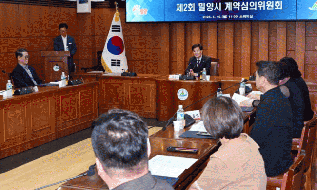 [NWS¹æ¼Û=Çѽ¸ñ ±âÀÚ]¹Ð¾ç½Ã´Â °øÁ¤Çϰí Åõ¸íÇÑ °è¾àÀ¸·Î ½Å·Ú¹Þ´Â ÇàÁ¤ ±â¹ÝÀ» ¸¶·ÃÇϱâ À§ÇØ 19ÀÏ ½Ãû ¼ÒȸÀǽǿ¡¼­ ¹Ð¾ç½Ã °è¾à½ÉÀÇÀ§¿øÈ¸ À§ÃË½Ä ¹× ȸÀǸ¦ °³ÃÖÇß´Ù°í ¹àÇû´Ù. À̹ø¿¡ À§ÃËµÈ °è¾à½ÉÀÇÀ§¿øÈ¸´Â ¹ý¹«»ç, °Ç¼³ °ü·Ã¡¦