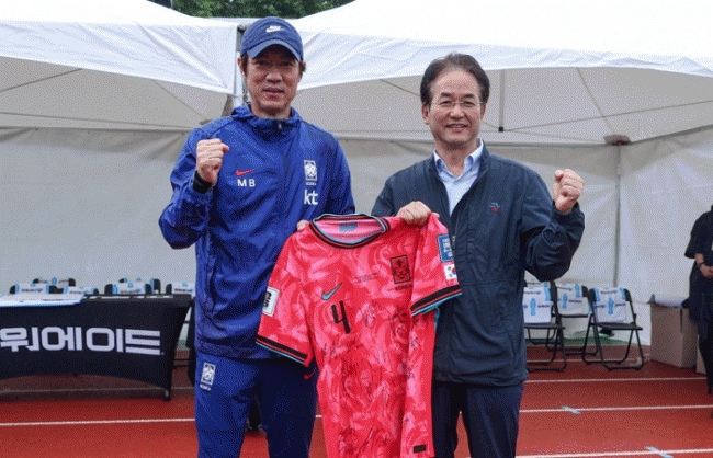 [NWS¹æ¼Û=¼­Çö¼® ±âÀÚ]°í¾çƯ·Ê½Ã´Â 13ÀϱîÁö ´ëÇѹα¹ Ã౸±¹°¡´ëÇ¥ÆÀÀÌ °í¾çÁ¾ÇտÀå ÁÖ°æ±âÀå ¹× º¸Á¶°æ±âÀå¿¡¼­ ÈÆ·ÃÀ» ÁøÇàÇÑ´Ù°í ¹àÇû´Ù. Áö³­ 6ÀϺÎÅÍ ½ÃÀÛµÈ À̹ø ÈÆ·ÃÀº 10¿ù A¸ÅÄ¡ ±â°£¿¡ ¿­¸®´Â ºê¶óÁúÀü(10¿ù 10ÀÏ)°ú ÆÄ¡¦
