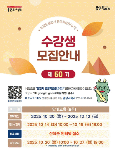 [»çȸ] ¿ëÀÎÆ¯·Ê½Ã, Æò»ýÇнÀ°ü ¡®Á¦60±â ´Ü±â±³À°¡¯ ¼ö°­»ý ¸ðÁý |2025. 10.09
