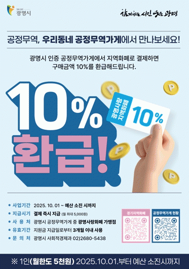 [»çȸ] °øÁ¤¹«¿ª+Áö¿ªÈ­Æó, ±¤¸í½Ã°¡ ÂøÇÑ ¼Òºñ¿¡ 10% º¸ÅÇ´Ï´Ù |2025. 10.09