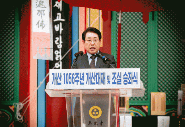 [NWS¹æ¼Û=Çѽ¸ñ ±âÀÚ] ³²¾çÁÖ½ÃÀÇȸ´Â 9ÀÏ ³²¾çÁֽà ÁøÁ¢À¾ ºÀ¼±»ç Å«¹ý´ç¿¡¼­ ¿­¸° 1056Áֳ⠰³»ê´ëÁ¦ ¹× ¿îÇãü ¹èÆ÷½Ä¿¡ Âü¼®Çß´Ù. ¿îÇãü´Â ¿îÇ㽺´ÔÀÌ »ýÀü¿¡ Á÷Á¢ ¾²½Å ¹ß¿ø¹®ÀÇ À°ÇÊÀ» Åä´ë·Î ³²¾çÁÖ½Ã¿Í ºÀ¼±»ç°¡ ÇÔ²² ¿îÇ㽺´Ô¡¦