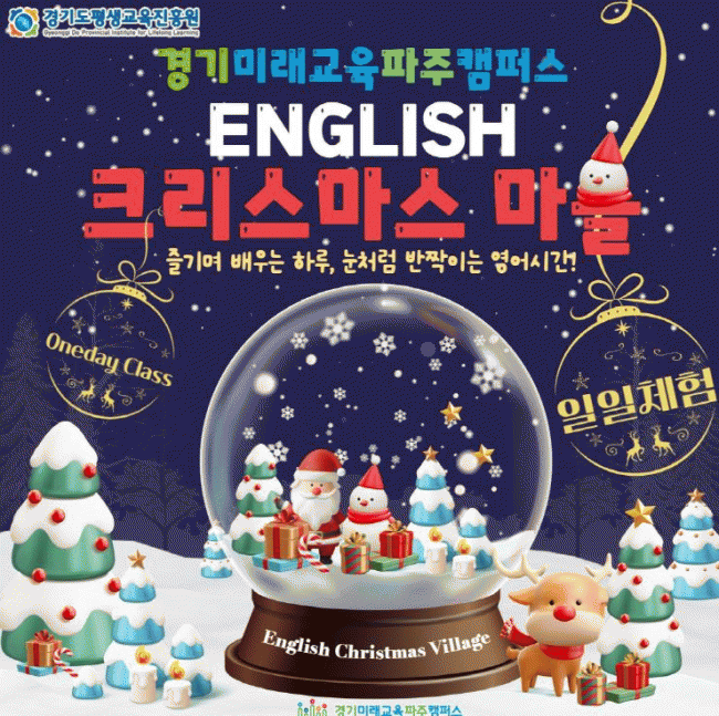[NWS¹æ¼Û=Çѽ¸ñ ±âÀÚ]°æ±âµµÆò»ý±³À°ÁøÈï¿ø °æ±â¹Ì·¡±³À°ÆÄÁÖÄ·ÆÛ½º(±¸ ÆÄÁÖ¿µ¾î¸¶À»)°¡ ´Ù°¡¿À´Â Å©¸®½º¸¶½º¸¦ ¸Â¾Æ ¾î¸°À̵éÀÇ ±Û·Î¹ú °¨°¢À» Ű¿ï ¼ö Àִ Ưº° ¿µ¾îüÇè ÇÁ·Î±×·¥À» ¿î¿µÇÑ´Ù. 11¿ù 15ÀϺÎÅÍ 12¿ù 13ÀϱîÁö 5ÁÖ°£ ¸Å¡¦
