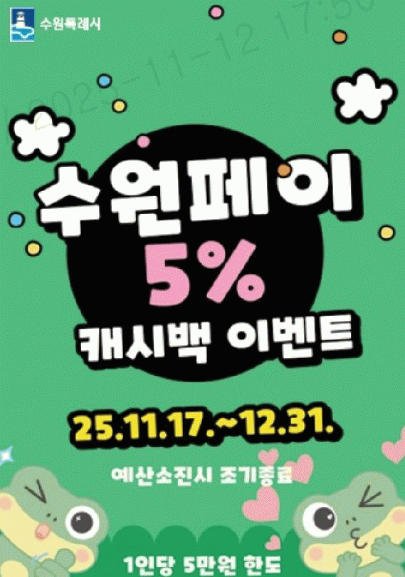 [»çȸ] ¼ö¿øÆäÀÌ »ç¿ëÀÚ, 17ÀϺÎÅÍ 5% ij½Ã¹é ¹ÞÀ» ¼ö ÀÖ´Ù |2025. 11.14