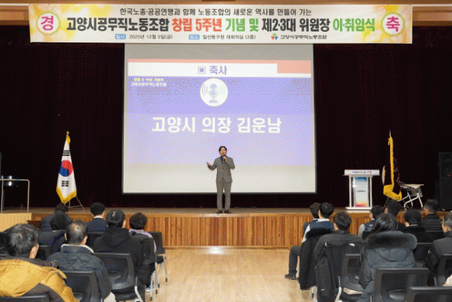 [Áö¿ªÁ¤Ä¡] °í¾çƯ·Ê½ÃÀÇȸ ±è¿î³² ÀÇÀå, °ø¹«Á÷³ëµ¿Á¶ÇÕ 5Áֳ⠱â³äÇà»ç ¹× À§¿øÀå ÀÌ¡¤ÃëÀÓ½Ä Âü¼® |2025. 12.11