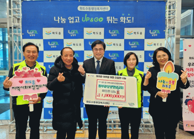 [NWS¹æ¼Û=Çѽ¸ñ ±âÀÚ]³²¾çÁֽô 11ÀÏ µ¿ºÎ±¤¼º»ý¸í»ù±³È¸°¡ È­µµÀ¾ Áö¿ª»çȸº¸ÀåÇùÀÇü¿¡ Ãë¾à°èÃþ µ¿Àý±â ³­¹æºñ Áö¿øÀ» À§ÇÑ ÈÄ¿ø±Ý 100¸¸ ¿øÀ» Àü´ÞÇß´Ù°í ¹àÇû´Ù. À̹ø ±âŹÀº ¼ºÅºÀýÀ» ¾ÕµÎ°í Ãß¿î °Ü¿ïö ³­¹æºñ ºÎ´ãÀÌ Ä¿Áø Ã롦