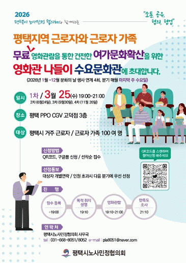 [NWS¹æ¼Û=Çѽ¸ñ ±âÀÚ]ÆòÅýóë»ç¹ÎÁ¤ÇùÀÇȸ°¡ Áö³­ 25ÀÏ ÆòÅà °í´öCGV¿¡¼­ ÆòÅÃÁö¿ª ±Ù·ÎÀÚ¿Í ±Ù·ÎÀÚ °¡Á·À» À§ÇÑ ¿µÈ­°ü ³ªµéÀÌ ÇÁ·Î±×·¥ÀÎ ¡®¼ö¿ä¹®È­°ü¡¯À» °³ÃÖÇß´Ù. À̹ø Çà»ç´Â ±Ù·ÎÀÚ¿Í °¡Á·¿¡°Ô Àϰú »ýȰ ±ÕÇü ¹®È­ È®»ê°ú °Ç¡¦
