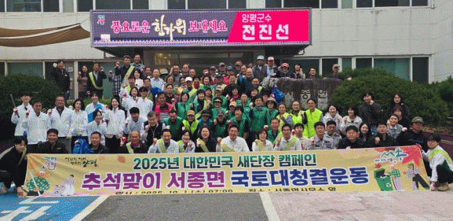 [NWS¹æ¼Û=Çѽ¸ñ ±âÀÚ]¾çÆò±º ¼­Á¾¸éÀº Áö³­ 10¿ù 1ÀÏ, Á¤ºÎÀÇ ¡®2025³â ´ëÇѹα¹ »õ´ÜÀå Ä·ÆäÀΡ¯ ÁÖ°£À» ¸Â¾Æ °ø¹«¿ø, À¯°ü ±â°ü¡¤´Üü, Áö¿ª ÁֹΠµî°ú ÇÔ²² ¼­Á¾¸é ¹®È£¸® ÀÏ¿ø¿¡¼­ Ãß¼®¸ÂÀÌ ±¹Åä´ëû°á ¿îµ¿À» ½Ç½ÃÇß´Ù°í ¹àÇû´Ù. ¡¦