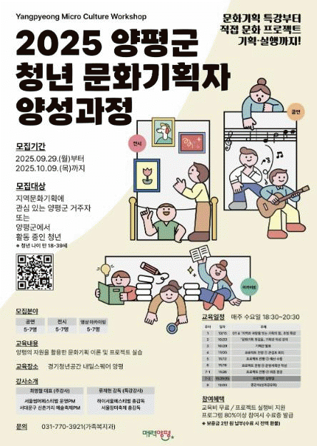 [NWS¹æ¼Û=Çѽ¸ñ ±âÀÚ]¾çÆò±ºÀº û³âµéÀÇ ¹®È­¡¤¿¹¼ú ±âȹ ¿ª·® °­È­¸¦ ÅëÇØ Áö¿ª»çȸ ¹®È­ Ȱ¼ºÈ­¿Í û³â ÀÏÀÚ¸® âÃâÀ» Áö¿øÇϰíÀÚ ¡®2025³â ¾çÆò±º û³â ¹®È­±âȹÀÚ ¾ç¼º°úÁ¤¡¯À» 10¿ùºÎÅÍ 12¿ù±îÁö ¿î¿µÇÑ´Ù°í ¹àÇû´Ù. À̹ø ±³À°Àº ¡¦