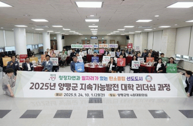 [NWS¹æ¼Û=Çѽ¸ñ ±âÀÚ]¾çÆò±ºÀº Áö³­ 9¿ù 30ÀÏ ¾çÆòµµ¼­°ü ´Ù¸ñÀû½Ç¿¡¼­ ¡®Á¦5ȸ ȯ°æ ¸í»ç ÃÊû °­¿¬¡¯À» °³ÃÖÇß´Ù. À̹ø °­¿¬Àº ȯ°æ±³À°µµ½Ã ÁöÁ¤ ±â³ä°ú ÇÔ²², ¡®Áö¼Ó°¡´É¹ßÀü ȯ°æ±³À°µµ½Ã ¾çÆò±ºÀ» À§ÇÑ ÅëÇÕÀü·« ÇÁ·ÎÁ§Æ®¡¯¸¦ ÁÖÁ¦¡¦