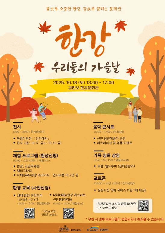 [NWS¹æ¼Û=Çѽ¸ñ ±âÀÚ]K-waterÇѰ­º¸°ü¸®´Ü°ú ÄÉÀÌ¿öÅͿ°ü¸® ÇѰ­¹®È­°üÀº ¿À´Â 10¿ù 18ÀÏ °¡Á·°ú ÀÌ¿ôÀÌ ÇÔ²² Áñ±â´Â ´ëÇ¥ ¹®È­ÃàÁ¦ ¡°ÇѰ­, ¿ì¸®µéÀÇ °¡À»³¯¡±¸¦ °³ÃÖÇÑ´Ù°í ¹àÇû´Ù À̹ø Çà»ç´Â ¹®È­ÀÇ ³¯À» ¸Â¾Æ ½Ã¹Î ´©±¸³ª Àܵð¡¦