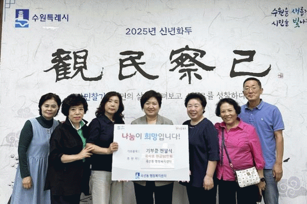[NWS¹æ¼Û=Çѽ¸ñ ±âÀÚ]¼ö¿ø½Ã ±Ç¼±±¸ °î¼±µ¿ ÇàÁ¤º¹Áö¼¾ÅÍ´Â Áö³­ 10¿ù 1ÀÏ, °î¼±µ¿ÀÇ ´ëÇ¥ÀûÀÎ ¹Î°£´ÜüÀÎ °î»ç¸ð(°î¹ÝÁ¤µ¿À» »ç¶ûÇÏ´Â ¸ðÀÓ)¿¡¼­ °ü³» Àú¼Òµæ Ãë¾à°èÃþÀ» µ½±â À§ÇØ Çö±Ý 50¸¸¿øÀ» ±âŹÇß´Ù°í ¹àÇû´Ù. À̹ø¿¡ Àü´ÞµÈ ¼º¡¦