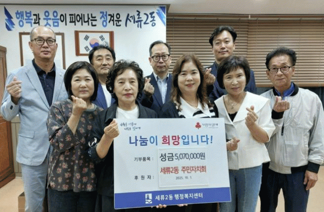 [NWS¹æ¼Û=Çѽ¸ñ ±âÀÚ]¼ö¿ø½Ã ±Ç¼±±¸ ¼¼·ù2µ¿ ÁÖ¹ÎÀÚġȸ´Â Áö³­ 10¿ù 1ÀÏ, Ãß¼® ¸íÀýÀ» ¸ÂÀÌÇÏ¿© ÀÌ¿ôµ½±â ¼º±Ý 507¸¸¿øÀ» ¼¼·ù2µ¿ ÇàÁ¤º¹Áö¼¾ÅÍ¿¡ ±âºÎÇß´Ù. À̹ø ±âºÎ´Â Áö¿ª ³» ¾î·Á¿î ÀÌ¿ôµéÀÌ Ç³¼ºÇÑ Ãß¼® ¸íÀýÀ» º¸³¾ ¼ö ÀÖµµ·Ï ¡¦