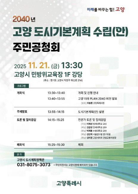 [»çȸ] °í¾ç½Ã '2040 °í¾ç µµ½Ã±âº»°èȹ ¼ö¸³' ÁֹΠ°øÃ»È¸ 21ÀÏ °³ÃÖ |2025. 11.14