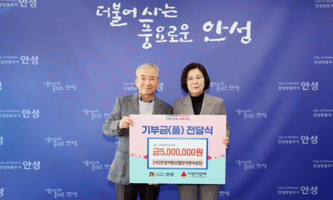 [NWS¹æ¼Û=Çѽ¸ñ ±âÀÚ]¾È¼º½Ã´Â Áö³­ 12¿ù 1ÀÏ, (»ç)¾È¼ºÁö¹æ»ê¾÷´ÜÁö°ü¸®°ø´ÜÀ¸·ÎºÎÅÍ Çö±Ý 500¸¸ ¿øÀ» ±âºÎ¹Þ¾Ò´Ù°í ¹àÇû´Ù. À̹ø ±âºÎ´Â Áö¿ª »ó»ý°ú »çȸ°øÇåÀÇ Çϳª·Î, µû¶æÇÑ ³ª´® ½ÇõÀ» ÅëÇØ Áö¿ª °øµ¿Ã¼¿¡ º¸ÅÆÀÌ µÇ°íÀÚ ÇÏ´Â ¡¦