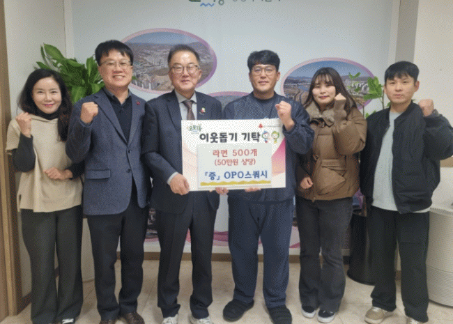 [NWS¹æ¼Û=Çѽ¸ñ ±âÀÚ]OPO½ºÄõ½Ã °­Àμ® ´ëÇ¥´Â 23ÀÏ ¾î·Á¿î ÀÌ¿ô¿¡°Ô Àü´ÞÇØ ´Þ¶ó¸ç ±¤Áֽà ¿ÀÆ÷1µ¿¿¡ ¶ó¸é 500°³(50¸¸ ¿ø »ó´ç)¸¦ ±âŹÇß´Ù. À̹ø ±âŹÀº ¿¬¸»À» ¸Â¾Æ Áö¿ª»çȸ¿¡ µû¶æÇÑ ³ª´®À» ½ÇõÇϰíÀÚ OPO½ºÄõ½Ã ȸ¿øµéÀÌ ÀÚ¹ßÀû¡¦