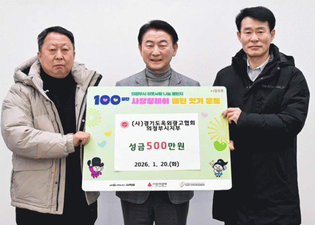 [»çȸ] ÀÇÁ¤ºÎ½Ã, (»ç)°æ±âµµ¿Á¿Ü±¤°íÇùȸ ÀÇÁ¤ºÎ½ÃÁöºÎ 100Àϰ£ »ç¶û¸±·¹ÀÌ ¼º±Ý 500¸¸ ¿ø ±âŹ |2026. 01.20