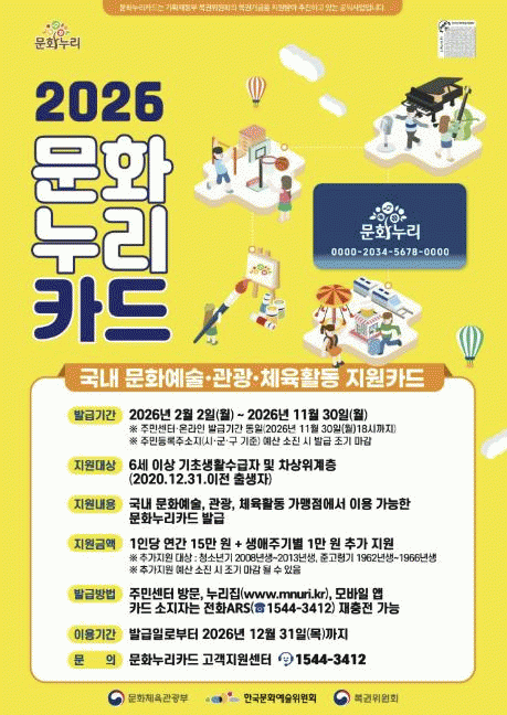 [»çȸ] °í¾ç½Ã, ¹®È­´©¸®Ä«µå ¹ß±Þ ½ÃÀÛ¡¦1Àδç 15¸¸ ¿ø Áö¿ø |2026. 02.03