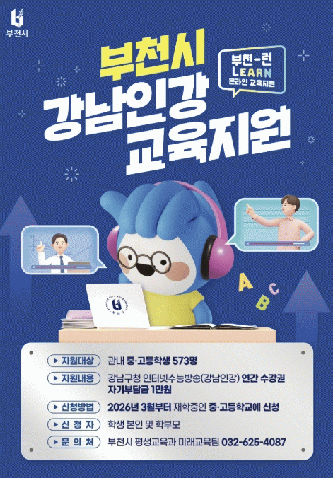 [NWS¹æ¼Û=Çѽ¸ñ ±âÀÚ]ºÎõ½Ã´Â 2026³â ¡®ºÎõ-·±(Learn) ¿Â¶óÀÎ ±³À°Áö¿ø¡¯ »ç¾÷À» ÃßÁøÇÑ´Ù°í 19ÀÏ ¹àÇû´Ù. ÀÌ´Â Áö³­ÇØ¿¡ ÀÌ¾î ½ÃÇàµÇ´Â °ÍÀ¸·Î, °ü³» Áß¡¤°íµîÇлýµé¿¡°Ô ¿Â¶óÀÎ ±³À° ±âȸ¸¦ Á¦°øÇÏ°í °¡Á¤ÀÇ »ç±³À°ºñ ºÎ´ãÀ» ¿ÏÈ­ÇÏ¡¦