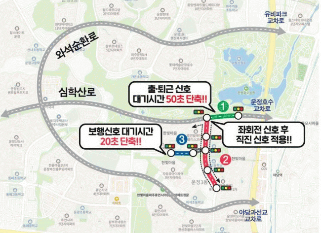 [NWS¹æ¼Û=Çѽ¸ñ ±âÀÚ]ÆÄÁֽô ÃâÅð±Ù ½Ã°£´ë¿¡ ½ÅÈ£ÁֱⰡ ±æ¾î ºÒÆíÇß´ø ¿îÁ¤ ÇѺû¸¶À» 5´ÜÁö ¹× 2¡¤5´ÜÁö ¼Òµµ·Î ÀÏ´ë ±¸°£ÀÇ ½Åȣü°è¸¦ ¿ì¼±ÀûÀ¸·Î °³¼±Çß´Ù°í ¹àÇû´Ù. ±×µ¿¾È ÇѺû¸¶À» ÁÖº¯ µµ·Î´Â ÃâÅð±Ù ½Ã°£´ë ½ÅÈ£ÁֱⰡ 210¡¦