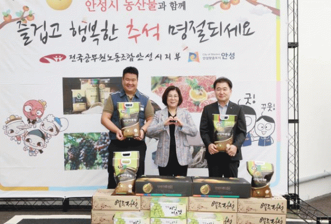 [NWS¹æ¼Û=Çѽ¸ñ ±âÀÚ]Àü±¹°ø¹«¿ø³ëµ¿Á¶ÇÕ ¾È¼º½ÃÁöºÎ´Â Áö³­ 30ÀÏ Ãß¼®À» ¾ÕµÎ°í Áö¿ª°æÁ¦ Ȱ¼ºÈ­¿Í Áö¿ª ³ó°¡ µ½±â¿¡ ¾ÕÀå¼­±â À§ÇØ Á¶ÇÕ¿øÀ» ´ë»óÀ¸·Î ÃÑ 1,800¸¸ ¿ø »ó´çÀÇ Áö¿ª ³ó»ê¹°À» ±¸¸ÅÇÏ¿© ¹èºÎÇß´Ù°í ¹àÇû´Ù. À̹ø Á¶ÇÕ¿ø ¡¦