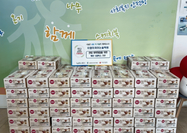 [NWS¹æ¼Û=Çѽ¸ñ ±âÀÚ]³²¾çÁֽô Áö³­ 14ÀÏ ´Ù»êµ¿ ¼ÒÀç ¡®ÀÌ¿µ¹Ì±¹¾î³í¼úÇпø¡¯ÀÌ °ü³» Ãë¾à°èÃþ Áö¿øÀ» À§ÇØ ÇÞ¹Ý 100¹Ú½º(180¸¸¿ø »ó´ç)¸¦ ³²¾çÁֽú¹ÁöÀç´Ü¿¡ ±âŹÇß´Ù°í ¹àÇû´Ù. À̹ø ±âŹÀº °Ü¿ïö ÇÑÆÄ·Î ¾î·Á¿òÀ» °Þ´Â ÀÌ¿ôµé¿¡¡¦
