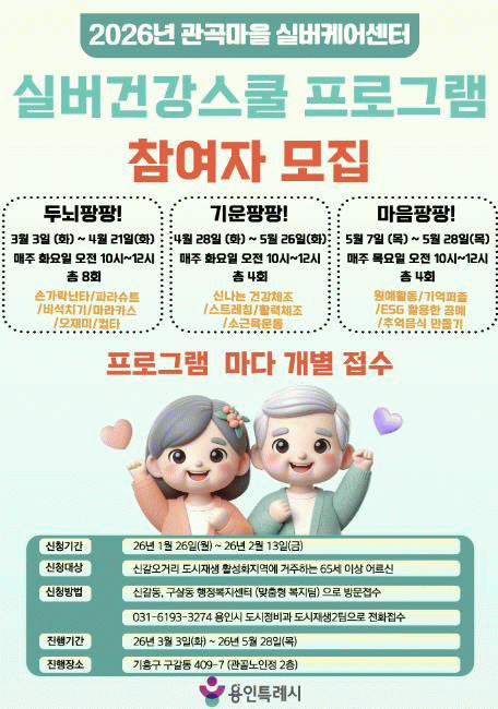 [»çȸ] ¿ëÀÎÆ¯·Ê½Ã, '°ü°î¸¶À» ½Ç¹öÄɾÅÍ ½Ç¹ö°Ç°­ ÇÁ·Î±×·¥' Âü¿©ÀÚ ¸ðÁý |2026. 02.03