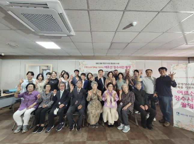 [NWS¹æ¼Û=Çѽ¸ñ ±âÀÚ]¼ö¿ø½Ã ¿µÅ뱸 ¸Åź3µ¿ ÁÖ¹ÎÀÚġȸ´Â Áö³­ 30ÀÏ ¸Åź3µ¿ ÇàÁ¤º¹Áö¼¾ÅÍ¿¡¼­¡®¾î¸£½ÅÀÇ ¹«º´Àå¼ö¿Í ÇູÀ» ±â¿øÇÏ´Â Àå¼ö»çÁø¡¯ÃÔ¿µÀ» ÁøÇàÇß´Ù. À̹ø »ç¾÷Àº ¹«·á·Î ¾î¸£½ÅÀÇ Àå¼ö»çÁøÀ» ÃÔ¿µÇÏ¿© ¾×ÀÚ¿¡ ³Ö¾î ÁõÁ¤¡¦