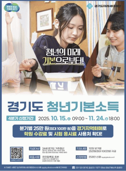 [NWS¹æ¼Û=Çѽ¸ñ ±âÀÚ]¿©Áֽô û³âµéÀÇ ÇູÃß±¸, »îÀÇ Áú Çâ»ó µî û³âÀÇ »çȸÀû ±âº»±Ç º¸ÀåÀ» À§ÇÑ ¡®2025³â 4ºÐ±â û³â±âº»¼Òµæ¡¯ ½ÅûÁ¢¼ö¸¦ ¿À´Â 10¿ù 15ÀϺÎÅÍ 11¿ù 24ÀϱîÁö ÁøÇàÇÑ´Ù°í ¹àÇû´Ù. ½Åû´ë»óÀº ¿©Áֽÿ¡ Áֹεî·Ï¡¦