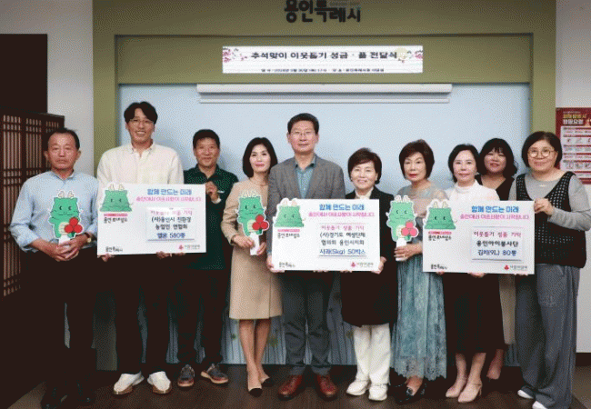 [NWS¹æ¼Û=Çѽ¸ñ ±âÀÚ]¿ëÀÎÆ¯·Ê½Ã´Â 9¿ù 30ÀÏ ¿ëÀÎÁö¿ªÀÇ ¹Î°£´Üü¿Í Çùȸ°¡ Ãß¼®À» ¾ÕµÎ°í ¾î·Á¿î ÀÌ¿ôÀ» µ½±â À§ÇØ ÃÑ 1684¸¸¿ø »ó´çÀÇ ¼ºÇ°À» ½Ã¿¡ Àü´ÞÇß´Ù°í ¹àÇû´Ù. ½Ãû ½ÃÀå½Ç¿¡¼­ ¿­¸° Àü´Þ½Ä¿¡¼­ (»ç)¿ëÀνÃģȯ°æ³ó¾÷Àο¬ÇÕȸ¡¦