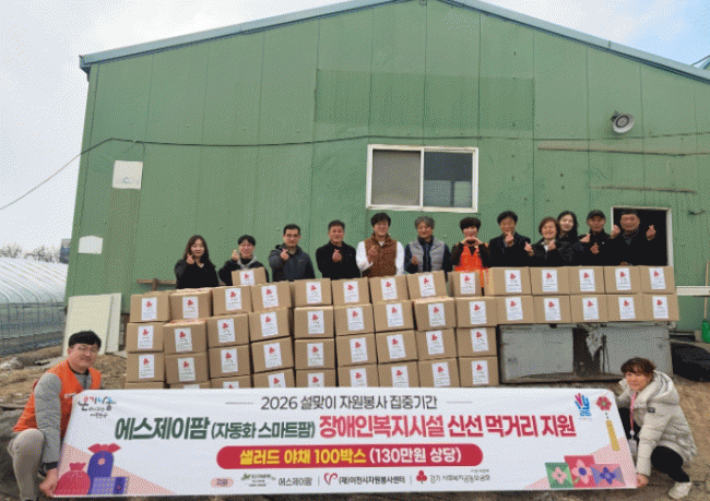 [NWS¹æ¼Û=Çѽ¸ñ ±âÀÚ](Àç)ÀÌõ½ÃÀÚ¿øºÀ»ç¼¾ÅÍ´Â ¼³¸ÂÀÌ ÀÚ¿øºÀ»ç ÁýÁß ±â°£À» ¸Â¾Æ ¿¡½ºÁ¦ÀÌÆÊ°ú ÇÔ²² »ø·¯µå ä¼Ò Çö¹° ±âʽÄÀ» ÁøÇàÇß´Ù°í ¹àÇû´Ù. ÀÌõ½Ã ´ëÆ÷µ¿¿¡ À§Ä¡ÇÑ ÀÚµ¿È­ ½º¸¶Æ®ÆÊ ¡®¿¡½ºÁ¦ÀÌÆÊ(SJ FARM)¡¯Àº ½Å¼±ÇÏ°Ô Àç¹è¡¦