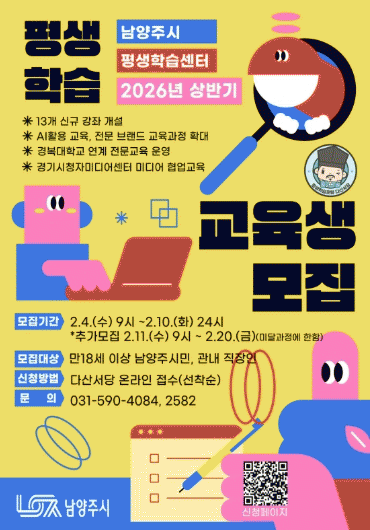 [»çȸ] ³²¾çÁÖ½Ã, 2026³â »ó¹Ý±â Æò»ýÇнÀ¼¾ÅÍ ±³À°»ý ¸ðÁý |2026. 01.30