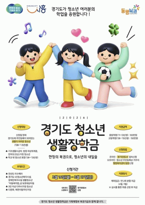[NWS¹æ¼Û=Çѽ¸ñ ±âÀÚ]½ÃÈï½Ã´Â °æÁ¦Àû ¾î·Á¿òÀ» °Þ´Â û¼Ò³âµéÀÌ ¾ÈÁ¤ÀûÀ¸·Î Çо÷À» À̾ ¼ö ÀÖµµ·Ï Áö¿øÇÏ´Â ¡®Ã»¼Ò³â »ýȰÀåÇбݡ¯ ´ë»óÀÚ¸¦ 3¿ù 16ÀϺÎÅÍ 27ÀϱîÁö ¸ðÁýÇÑ´Ù. ¡®Ã»¼Ò³â »ýȰÀåÇбݡ¯Àº ±âȹÀçÁ¤ºÎ º¹±Ç ±â±ÝÀ» ±â¹Ý¡¦