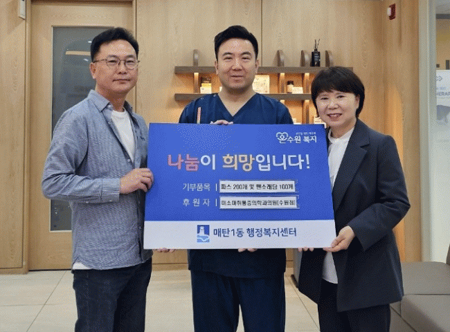 [NWS¹æ¼Û=Çѽ¸ñ ±âÀÚ]¼ö¿ø½Ã ¿µÅ뱸 ¸Åź1µ¿Àº Áö³­ 15ÀÏ ¹Ì¼Ò¸¶ÃëÅëÁõÀÇÇаúÀÇ¿øÀÌ Áö¿ª»çȸ ³ª´® ¹®È­ È®»ê°ú Ãë¾à°èÃþÀÇ °Ç°­ÇÑ »ýȰ Áö¿øÀ» À§ÇØ ¸Åź1µ¿¿¡ ÆÄ½º(5°³ÀÔ) 200°³¿Í ¸Ç¼Ò·¡´ã ·Î¼Ç 100°³¸¦ ÈÄ¿øÇß´Ù°í ¹àÇû´Ù. À̹ø ÈÄ¡¦