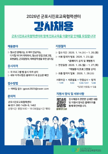 [NWS¹æ¼Û=Çѽ¸ñ ±âÀÚ](Àç)±ºÆ÷½Ãû¼Ò³âÀç´Ü ±ºÆ÷½ÃÁø·Î±³À°Çù·Â¼¾ÅÍ´Â °ü³» û¼Ò³âÀÇ Áø·Î Ž»ö°ú Áø·Î ¿ª·® °­È­¸¦ À§ÇØ '2026³â ±ºÆ÷½ÃÁø·Î±³À°Çù·Â¼¾ÅÍ °­»ç'¸¦ ä¿ëÇÑ´Ù°í ¹àÇû´Ù. À̹ø °­»ç ä¿ëÀº 2026³â ÇÑ ÇØ µ¿¾È ±ºÆ÷½Ã °ü³»¡¦
