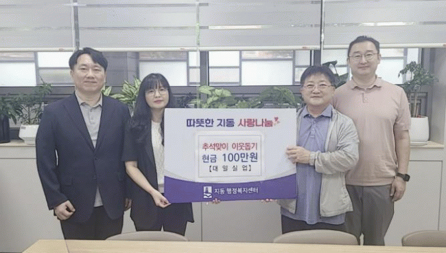 [NWS¹æ¼Û=Çѽ¸ñ ±âÀÚ]Áö³­ 26ÀÏ, ¢ß´ëÀϽǾ÷Àº Ãß¼® ¸íÀýÀ» ¸Â¾Æ ¾î·Á¿î ÀÌ¿ôÀ» À§ÇØ »ç¿ëÇØ ´Þ¶ó¸ç Çö±Ý 1,000,000¿øÀ» Áöµ¿ ÇàÁ¤º¹Áö¼¾ÅÍ¿¡ ±âŹÇß´Ù. ¢ß´ëÀϽǾ÷Àº Áöµ¿ »ýȰÆó±â¹° ¼öÁý ¹× ¿î¹ÝÀ» ´ëÇàÇÏ´Â ¾÷ü·Î ¼³ ¸íÀý¿¡ ÀÌ¾î ¡¦