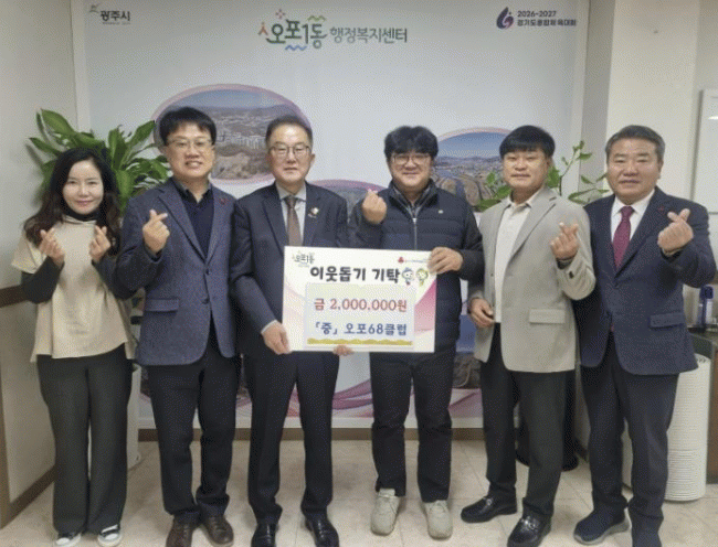 [NWS¹æ¼Û=Çѽ¸ñ ±âÀÚ]±¤Áֽà ¿ÀÆ÷68Ŭ·´ ¹Ú±¤¿¬ ´ëÇ¥´Â 23ÀÏ Áö¿ª ³» ¾î·Á¿î ÀÌ¿ôÀ» À§ÇØ »ç¿ëÇØ ´Þ¶ó¸ç ¼º±Ý 200¸¸ ¿øÀ» ¿ÀÆ÷1µ¿ ÇàÁ¤º¹Áö¼¾ÅÍ¿¡ Àü´ÞÇß´Ù. ¿ÀÆ÷68Ŭ·´Àº Áö¿ª»ç¶û ºÀ»ç Ȱµ¿À» ¸ñÀûÀ¸·Î ¿ÀÆ÷ ±Ç¿ª ³» 1968³â»ýÀ» ÁÖÃࡦ