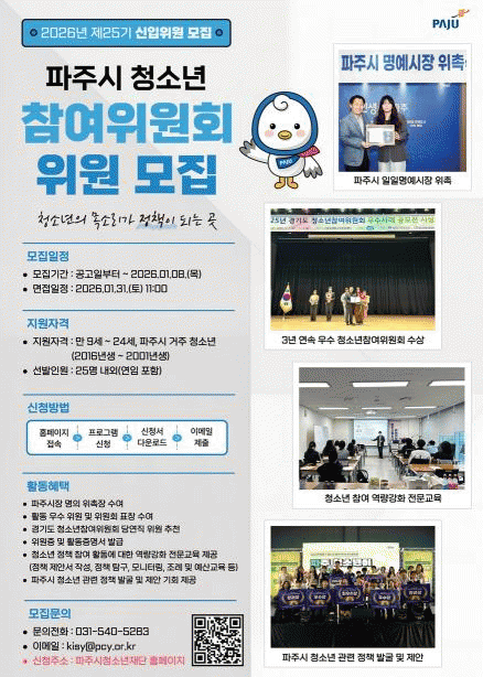 [»çȸ] ÆÄÁÖ½Ã, Á¦25±â û¼Ò³âÂü¿©À§¿øÈ¸ ½Å±Ô À§¿ø ¸ðÁý |2025. 12.16