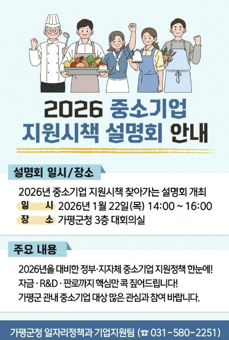 [»çȸ] °¡Æò±º, "»õÇØ Áß¼Ò±â¾÷ Áö¿ø ¼³¸íȸ ²À ¿À¼¼¿ä" |2026. 01.15