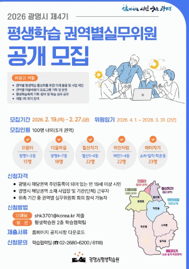 [»çȸ] ±¤¸í½Ã, Á¦4±â Æò»ýÇнÀ ±Ç¿ªº°½Ç¹«À§¿øÈ¸ À§¿ø 100¸í °ø°³ ¸ðÁý |2026. 02.02