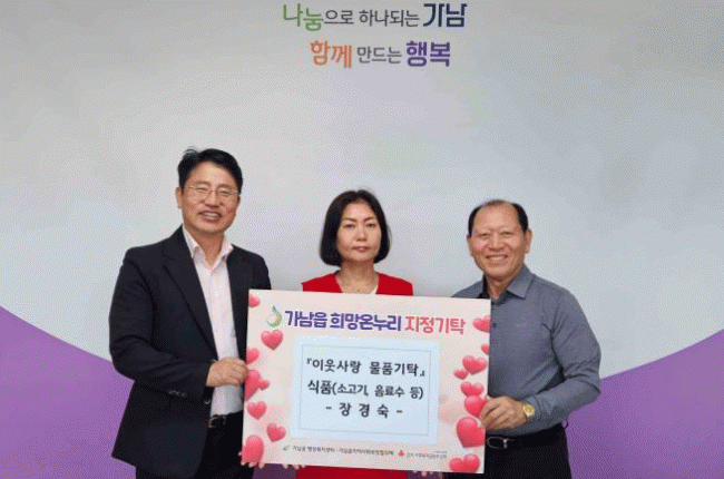 [NWS¹æ¼Û=Çѽ¸ñ ±âÀÚ]Áö³­ 9¿ù 30ÀÏ Àå°æ¼÷(°¡³²À¾ ÁÖ¹Î)¾¾°¡ °¡³²À¾ ³» ¾î·Á¿î ÀÌ¿ôµéÀ» À§ÇØ ¼Ò°í±â¿Í À½·á¼ö µî ½ÄǰÀ» °¡³²À¾ ÇàÁ¤º¹Áö¼¾ÅÍ¿¡ ±âŹÇß´Ù. Àå°æ¼÷ ¾¾´Â ¿©ÁÖ¹é·Î ·ÎŸ¸®Å¬·´ ȸ¿øÀ¸·Î, Æò¼Ò¿¡µµ ´Ù¾çÇÑ ºÀ»çȰµ¿°ú ³ª¡¦