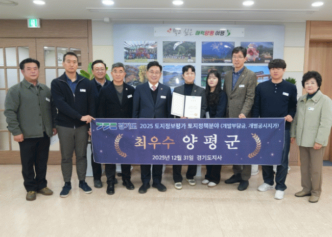 [NWS¹æ¼Û=Çѽ¸ñ ±âÀÚ]¾çÆò±ºÀº °æ±âµµ°¡ ÁÖ°üÇÑ ¡®2025³â ÅäÁöÁ¤º¸ Á¾ÇÕÆò°¡¡¯¿¡¼­ ÅäÁöÁ¤Ã¥ ºÐ¾ß(°³¹ßºÎ´ã±Ý ¹× °³º°°ø½ÃÁö°¡) ÃÖ¿ì¼ö ±â°üÀ¸·Î ¼±Á¤µÆ´Ù°í ¹àÇû´Ù. À̹ø Á¾ÇÕÆò°¡´Â °æ±âµµ ³» 31°³ ½Ã¡¤±ºÀ» ´ë»óÀ¸·Î ÅäÁöÁ¤Ã¥°ú ºÎµ¿¡¦
