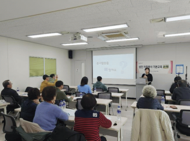 [NWS¹æ¼Û=Çѽ¸ñ ±âÀÚ]»ç´Ü¹ýÀÎ ±¸¸®½ÃÀÚ¿øºÀ»ç¼¾ÅÍ´Â 1¿ù 15ÀÏ, ÀÚ¿øºÀ»çÀÚ 30¸íÀ» ´ë»óÀ¸·Î ÀÚ¿øºÀ»ç ±âº» ±³À°À» ÇØ ÀÚ¿øºÀ»çÀÇ ÀÇ¹Ì¿Í °¡Ä¡, ÀÚ¿øºÀ»çÀÚ°¡ °®Ãß¾î¾ß ÇÒ ±Ç¸®¿Í Ã¥ÀÓ µîÀ» ¾È³»Çϸç Âü¿©ÀÚµéÀÇ ÀÌÇØ¸¦ ³ô¿´´Ù. À̹ø ±³¡¦
