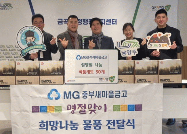 [NWS¹æ¼Û=Çѽ¸ñ ±âÀÚ]³²¾çÁֽô Áö³­ 9ÀÏ MGÁߺλõ¸¶À»±Ý°í°¡ Áö¿ª ³» Ãë¾à°èÃþÀÌ µû¶æÇÑ ¼³ ¸íÀýÀ» º¸³¾ ¼ö ÀÖµµ·Ï ½Äǰ ¼±¹° ¼¼Æ® 50°³¸¦ ±Ý°îµ¿ Áö¿ª»çȸº¸ÀåÇùÀÇü¿¡ ±âŹÇß´Ù°í 10ÀÏ ¹àÇû´Ù. À̹ø ÈÄ¿øÀº ¼³ ¸íÀýÀ» ¾ÕµÎ°í ¾î·Á¿ò¡¦
