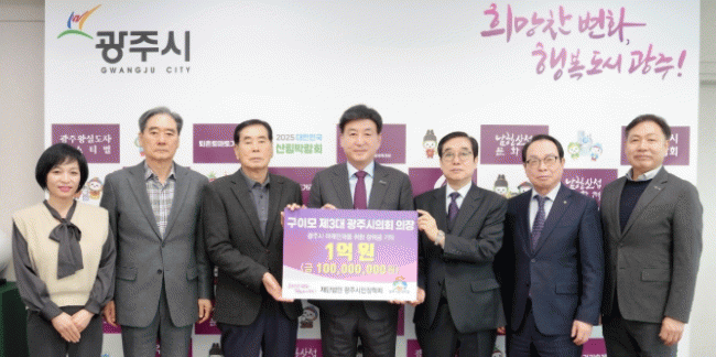 [NWS¹æ¼Û=Çѽ¸ñ ±âÀÚ]±¸À̸ð Á¦3´ë ±¤ÁÖ½ÃÀÇȸ ÀÇÀåÀº Áö³­ 10ÀÏ ±¤ÁÖ½ÃûÀ» ¹æ¹®ÇØ Áö¿ª ÇлýµéÀ» À§ÇÑ ÀåÇÐ±Ý 1¾ï ¿øÀ» (Àç)±¤ÁֽùÎÀåÇÐȸ¿¡ Àü´ÞÇß´Ù. À̹ø ±âŹÀº ¡®±³À°ÀÌ °ð ±¤ÁÖÀÇ ¹Ì·¡¡¯¶ó´Â ±¸ Àü ÀÇÀåÀÇ ½Å³ä¿¡ µû¶ó Áö¿ª ¡¦